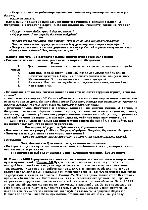 на, Н.В. Гоголя и картины Федотова.