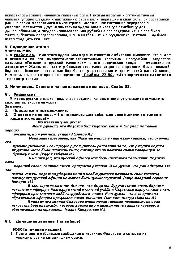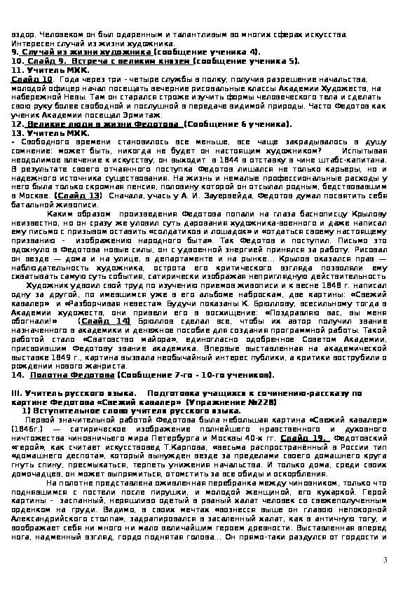 II. Рассказ о жизни и творчестве П.Федотова сопровождается презентацией.