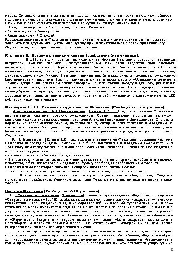 Полотна Федотова (Сообщение 7-10 учеников).