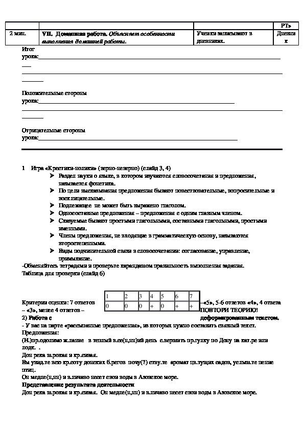 проводит итог урока. Заполняют таблицу «ИНСЕРТ»