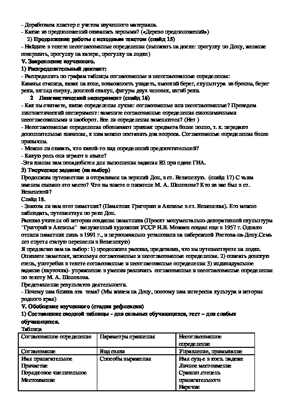 Опишите памятник, используя согласованные и несогласованные определения. 2) описать донскую