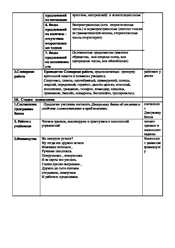 Расширение знаний учащихся о предложении как основной синтаксической