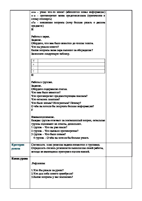 «V» знаю (мне это было известно ещё до чтения текста)«+» – узнал чтото новое! (абсолютно новая информация)