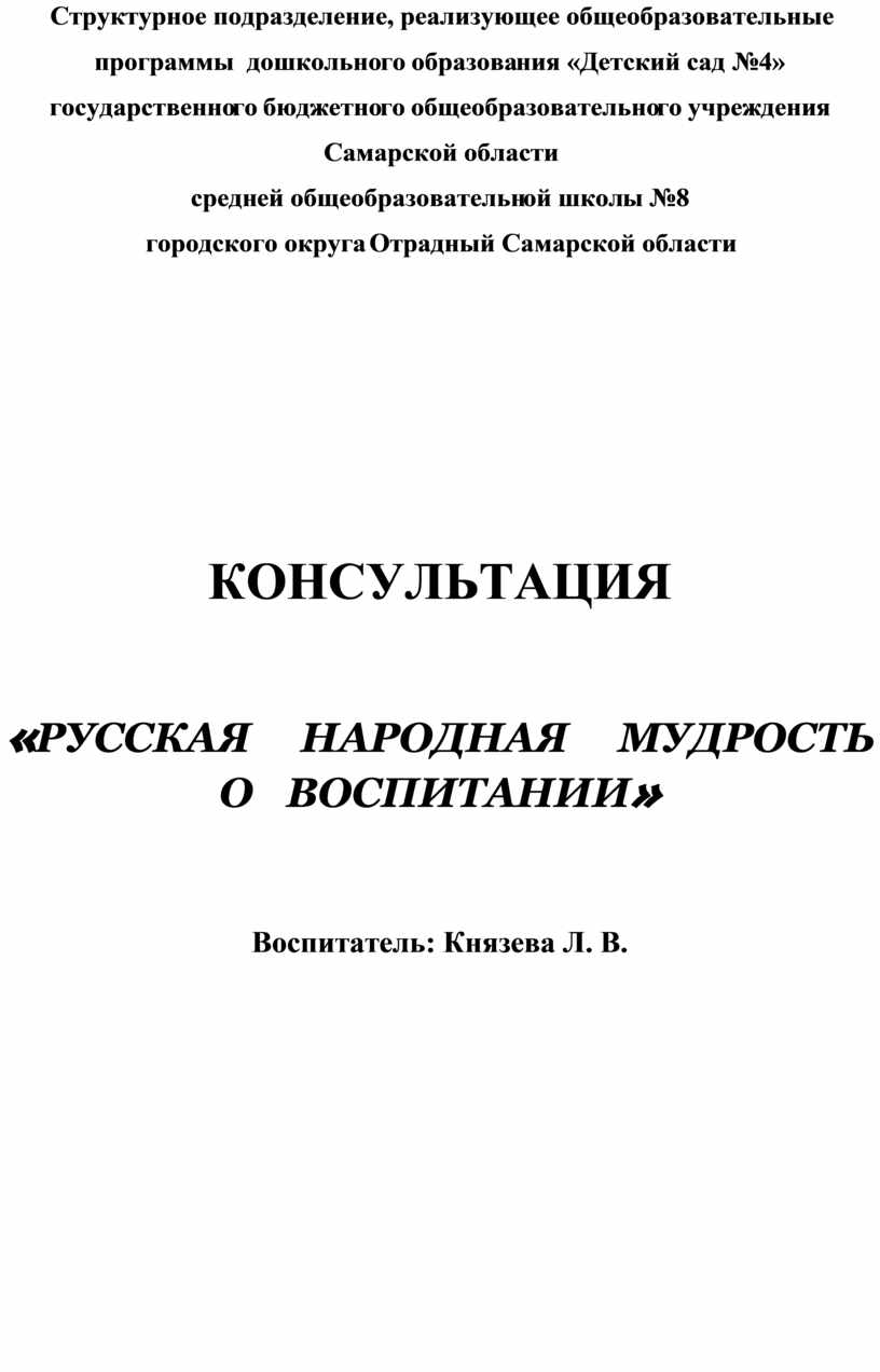 «РУССКАЯ НАРОДНАЯ МУДРОСТЬ