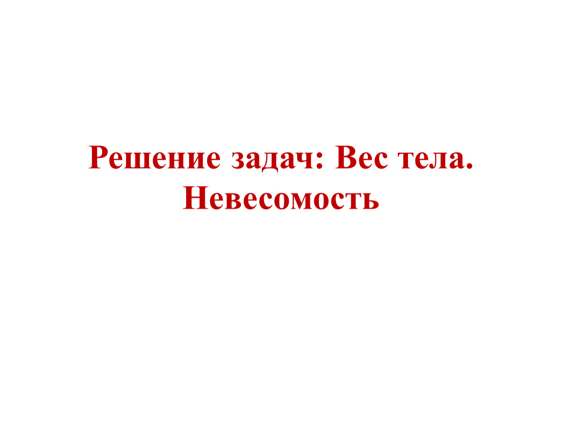 | Тело не давит на опору, не растягивает подвес, т.е. находится в невесомости. | Р = о | Р=0 | Невесомость | Ускоренье равно g – мы в невесомости уже. |