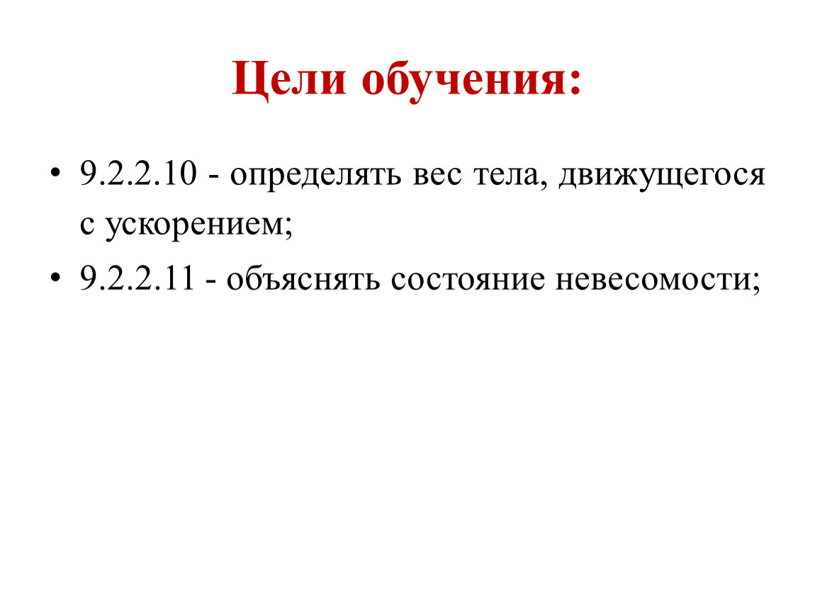 9.2.2.10 - определять вес тела, движущегося с ускорением;