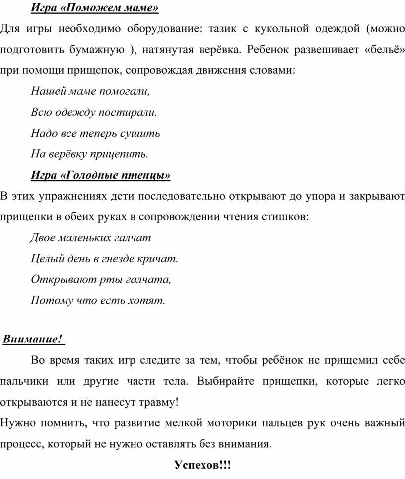 Во время таких игр следите за тем, чтобы ребёнок не прищемил себе пальчики или другие части тела. Выбирайте прищепки, которые легко открываются и не нанесут травму!