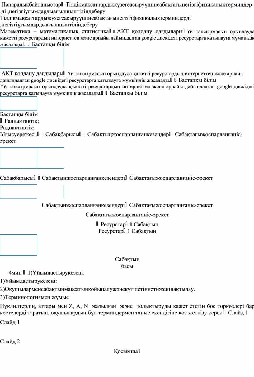 1)Ұйымдастырукезеңі: 2)Оқушыларменсабақтыңмақсатынқойыпалужәнекүтілетіннәтиженінақтылау. 3)Терминологиямен жұмыс Нуклидтердің, аттары мен Z, A, N жазылған және толықтыруды қажет ететін бос торкөздері бар кестелерді таратып, оқушылардың бұл терминдермен таныс екендігіне көз жеткізу керек. |