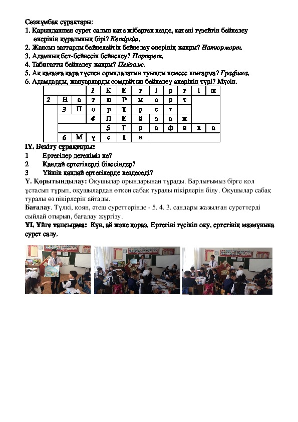 қиынды суреттерден құрастырып жауабын табады.