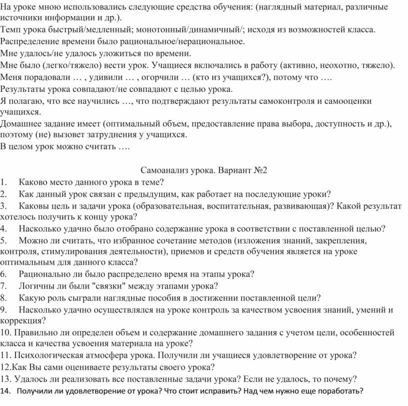 Самоанализ урока. Вариант №2