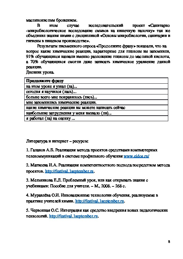 1. Галанов А.Б. Реализация метода проектов средствами компьютерных