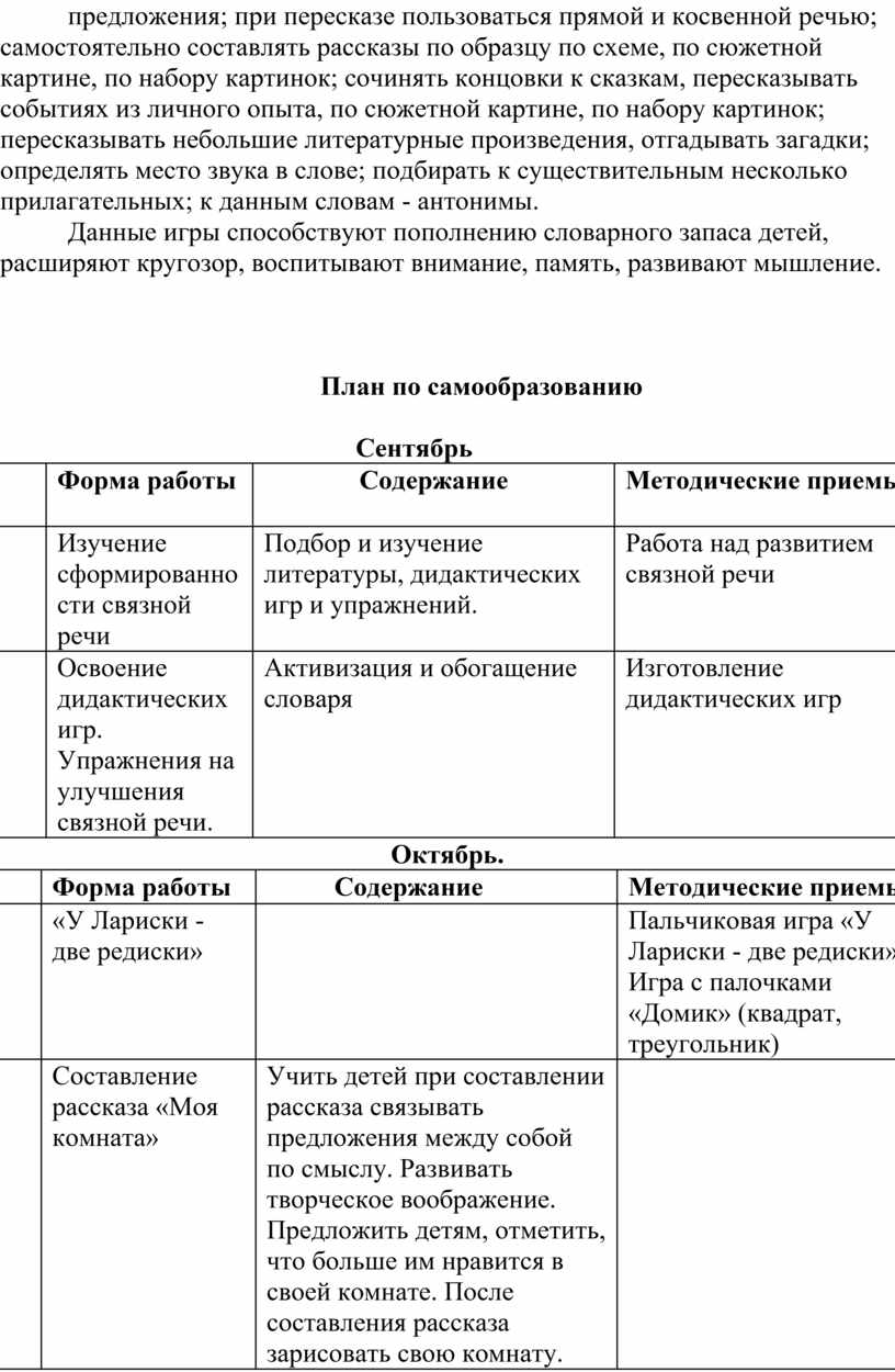 Подбор и изучение литературы, дидактических игр и упражнений. |