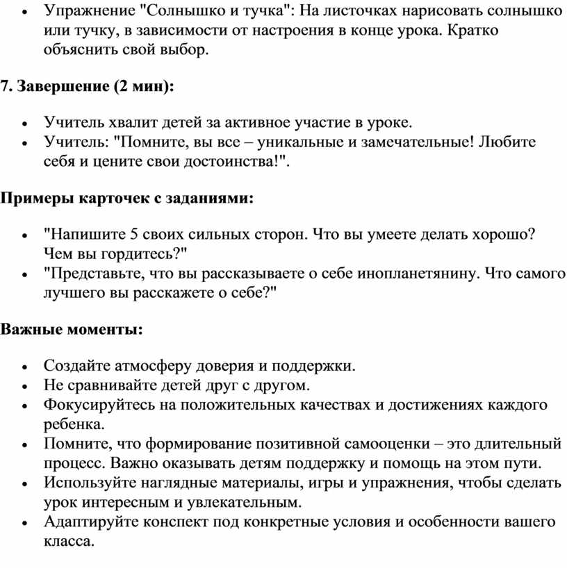 недостатки." (Учитель приводит пример: "Я ничего не умею, у