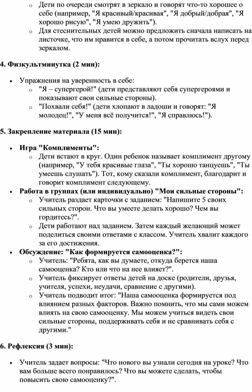 представление о самооценке, ее роли в жизни человека, помочь детям осознать