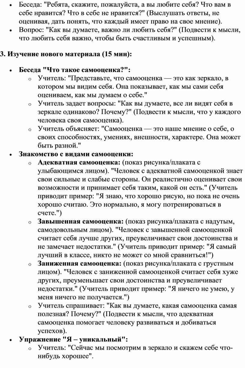 ли любить себя?" (Подвести к мысли, что любить себя важно, чтобы быть