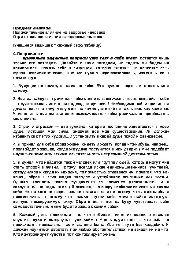 - Раскрыть сущность взаимосвязи полноценной жизни и здоровья человека;