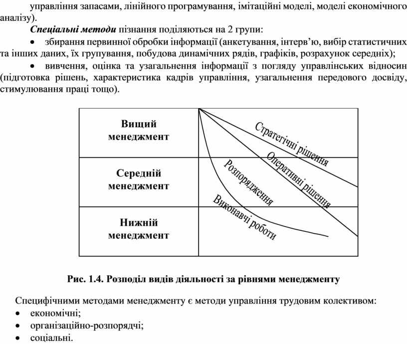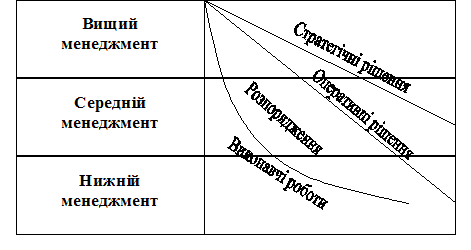 Рис. 1.4. Розподіл видів діяльності за рівнями менеджменту