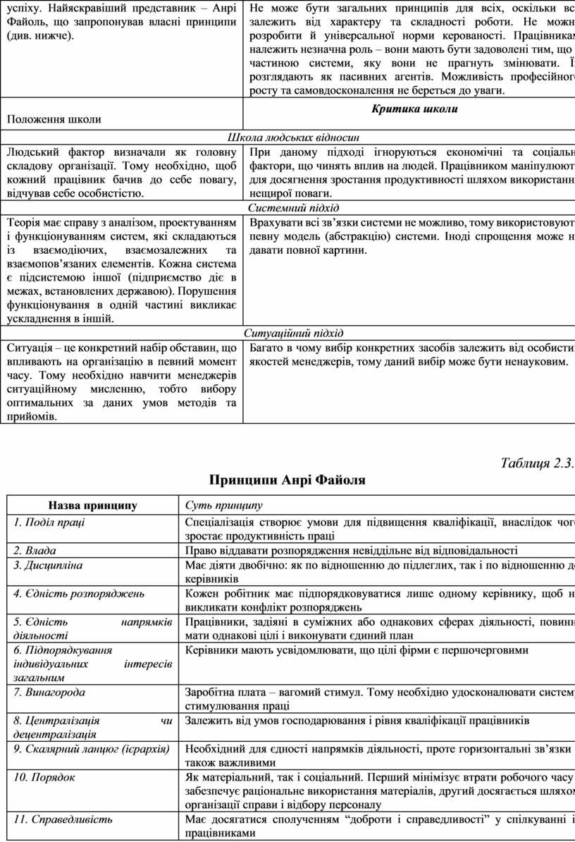 Мета – створення універсальних принципів управління, дотримання яких призведе до успіху. Найяскравіший представник – Анрі Файоль, що запропонував власні принципи (див. нижче). |