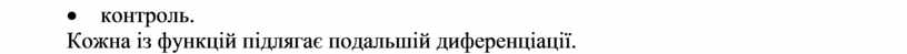 Функції менеджменту – відносно відокремлені напрями управлінської діяльності (трудові процеси в сфері управління), які забезпечують управлінську дію. Відображають суть і зміст управлінської діяльності на всіх рівнях управління. Процес управління здійснюється шляхом реалізації певних функцій.