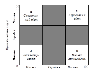 – інвестувати, щоб відновити втрачену позицію. Така стратегія є важкою для реалізації, якщо привабливість ринку слабка або середня;