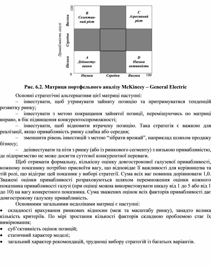 Рис. 6.2. Матриця портфельного аналізу McKincey – General Electric