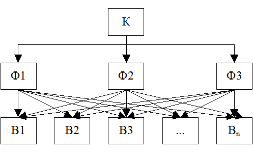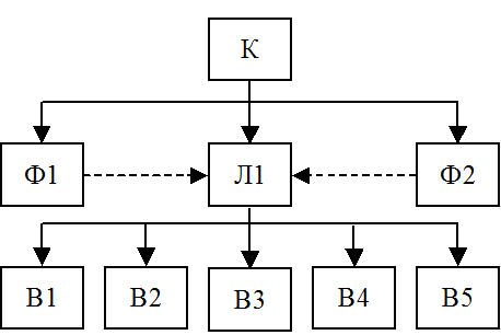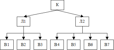 Рис. 7.2. Лінійна структура управління (К – керівник,