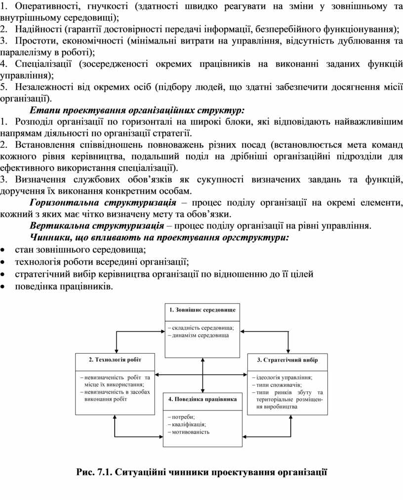 Рис. 7.1. Ситуаційні чинники проектування організації