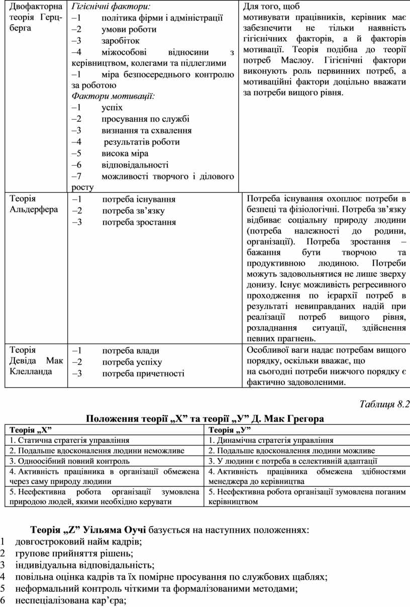 Положення теорії „Х” та теорії „У” Д. Мак Грегора