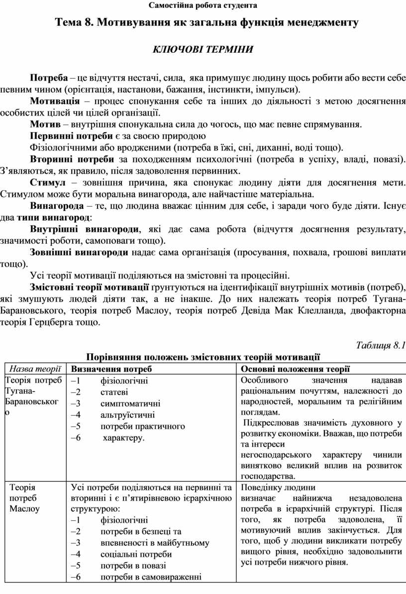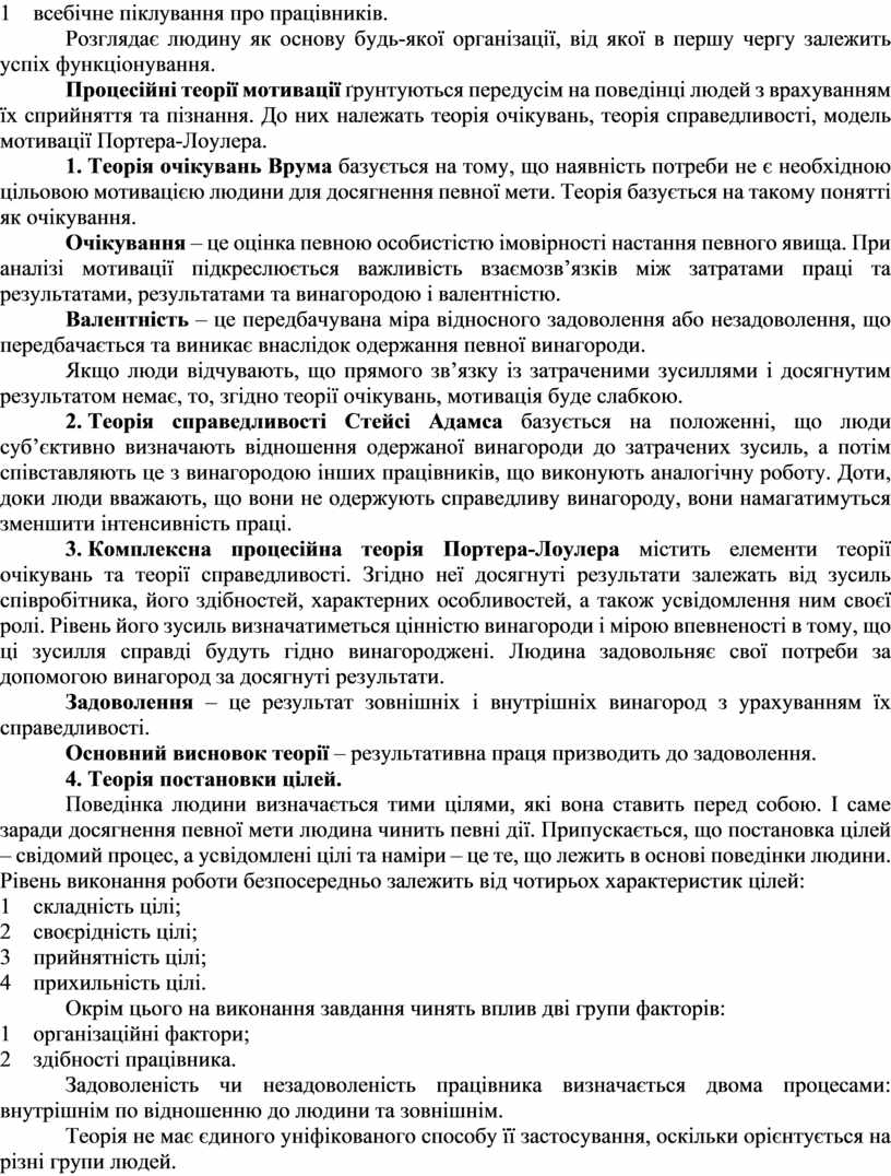 1. Теорія очікувань Врума базується на тому, що наявність потреби не є необхідною цільовою мотивацією людини для досягнення певної мети. Теорія базується на такому понятті як очікування.