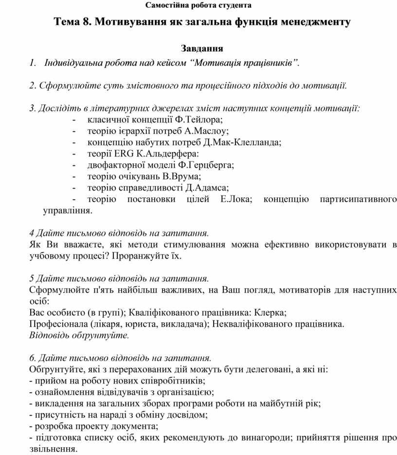 3. Дослідіть в літературних джерелах зміст наступних концепцій мотивації: