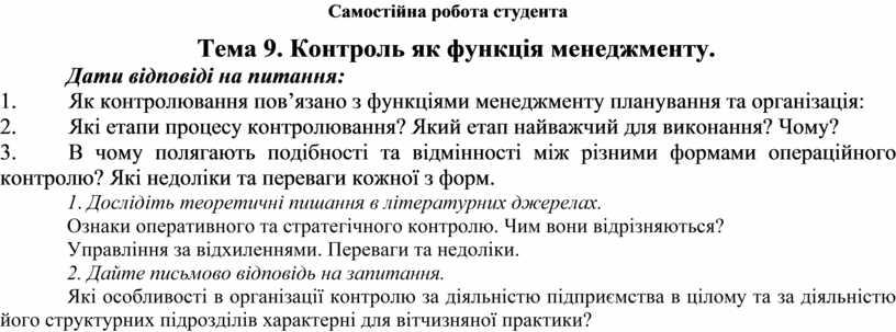 1. Як контролювання пов’язано з функціями менеджменту планування та організація: