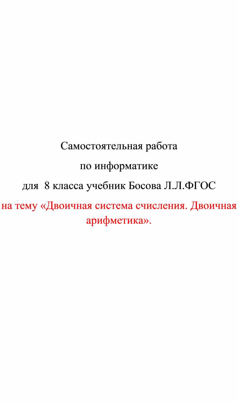 на тему «Двоичная система счисления. Двоичная арифметика».