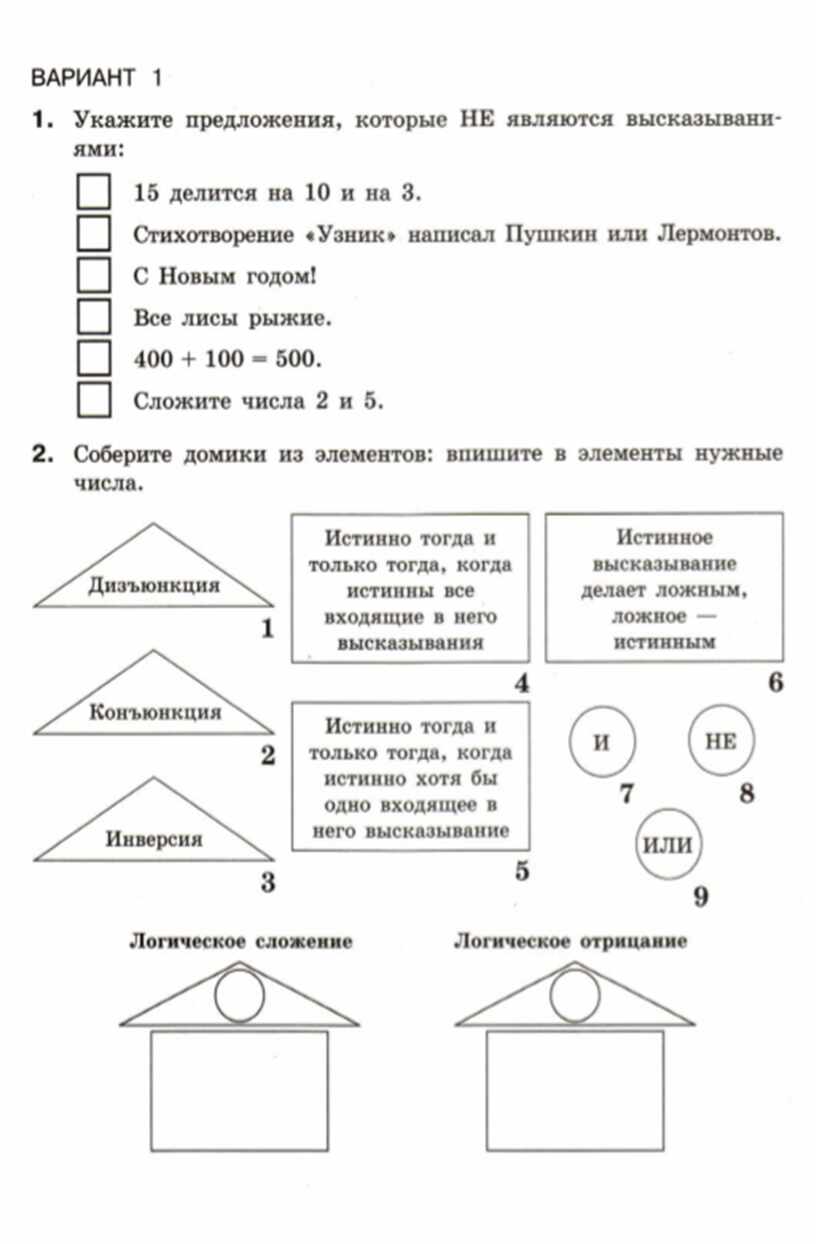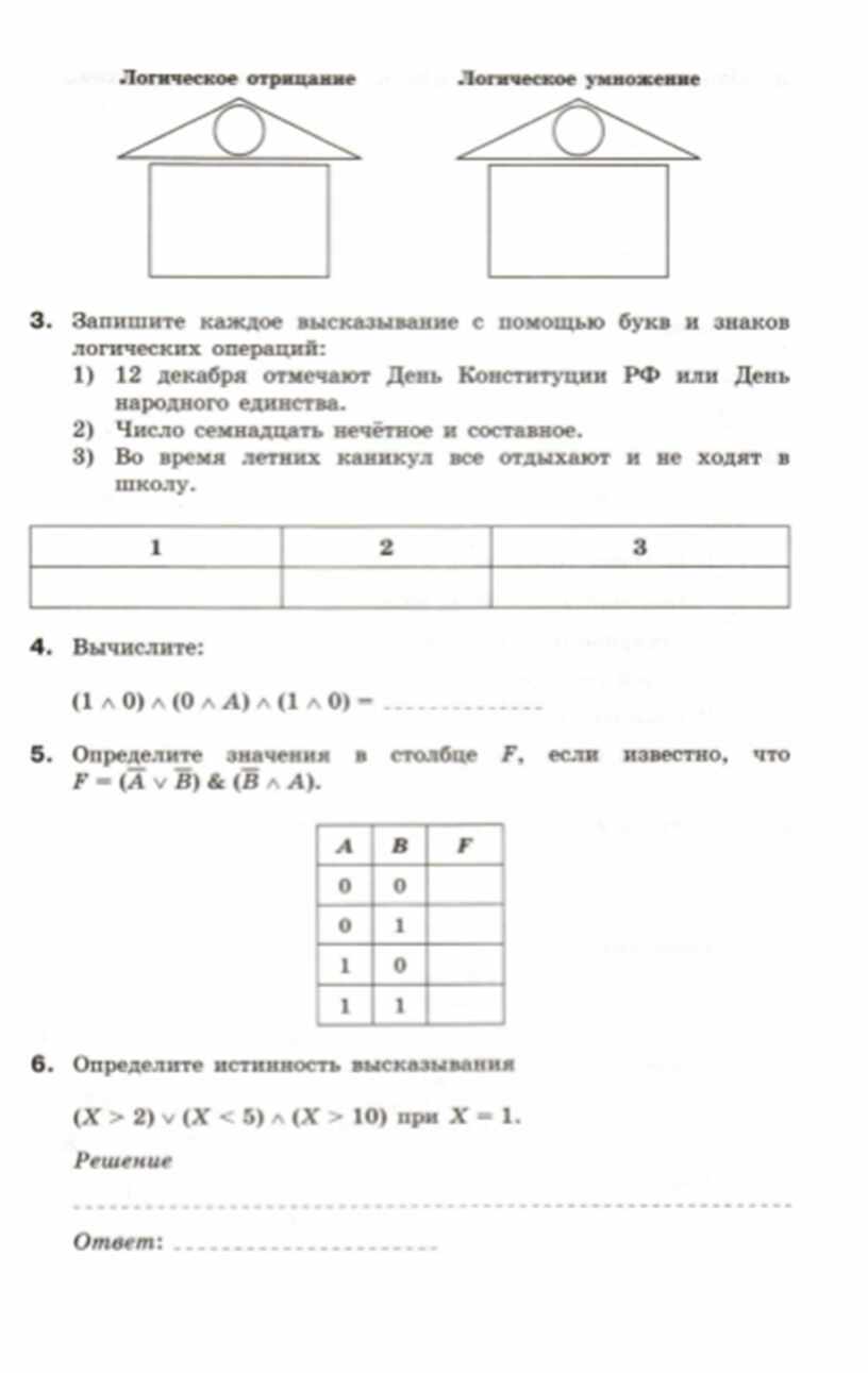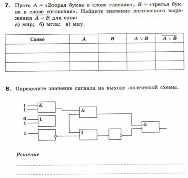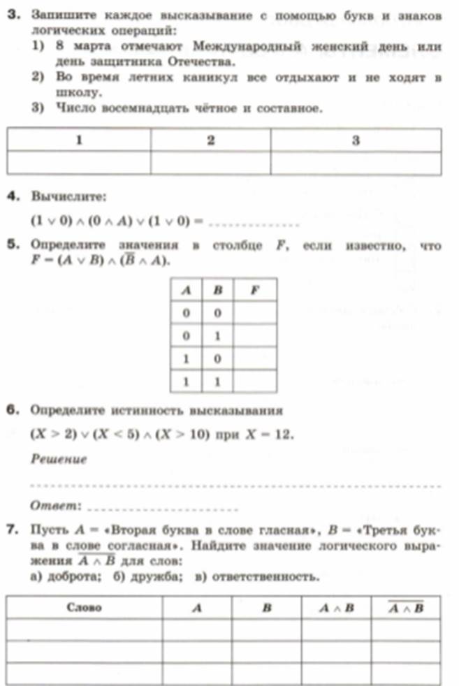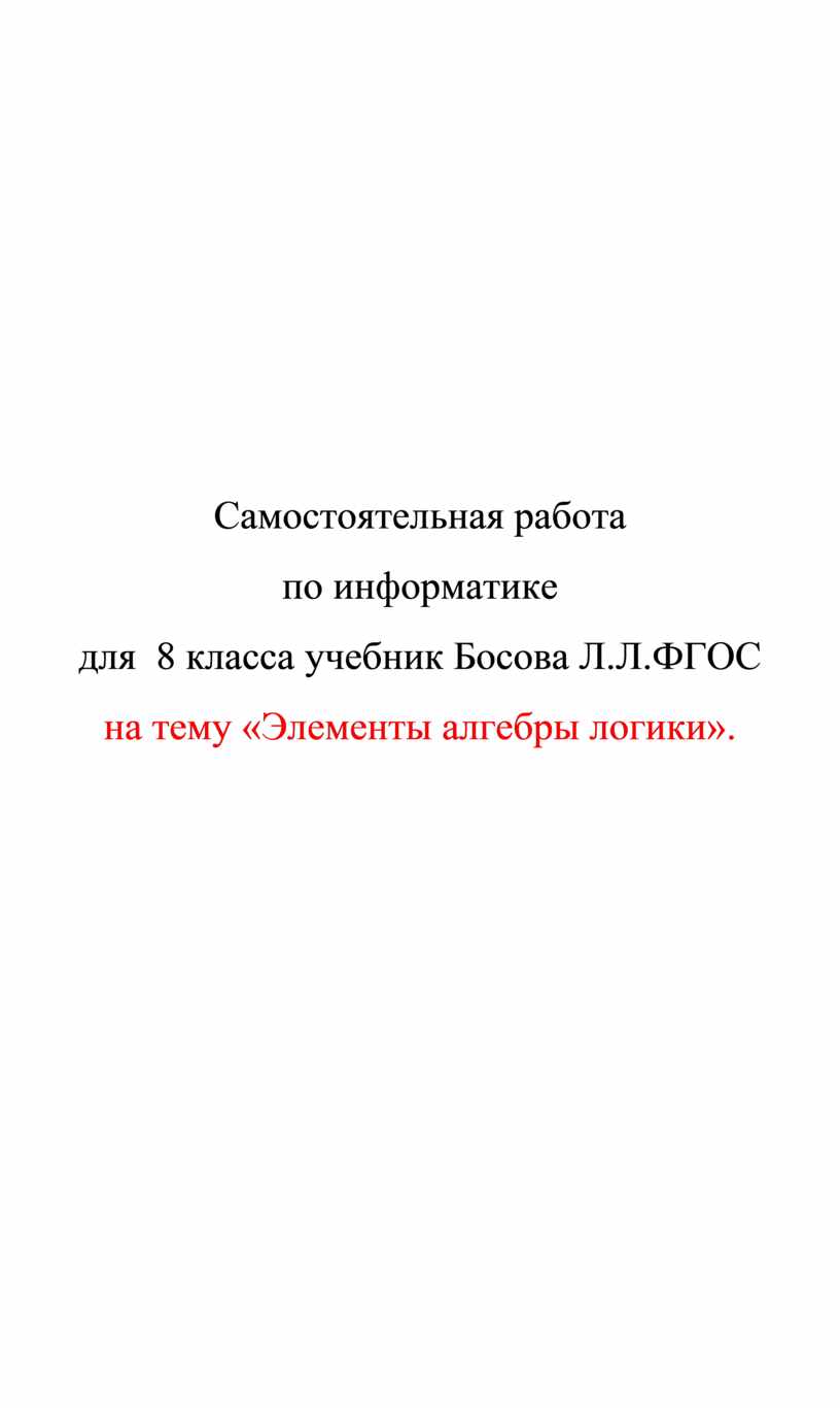 на тему «Элементы алгебры логики».