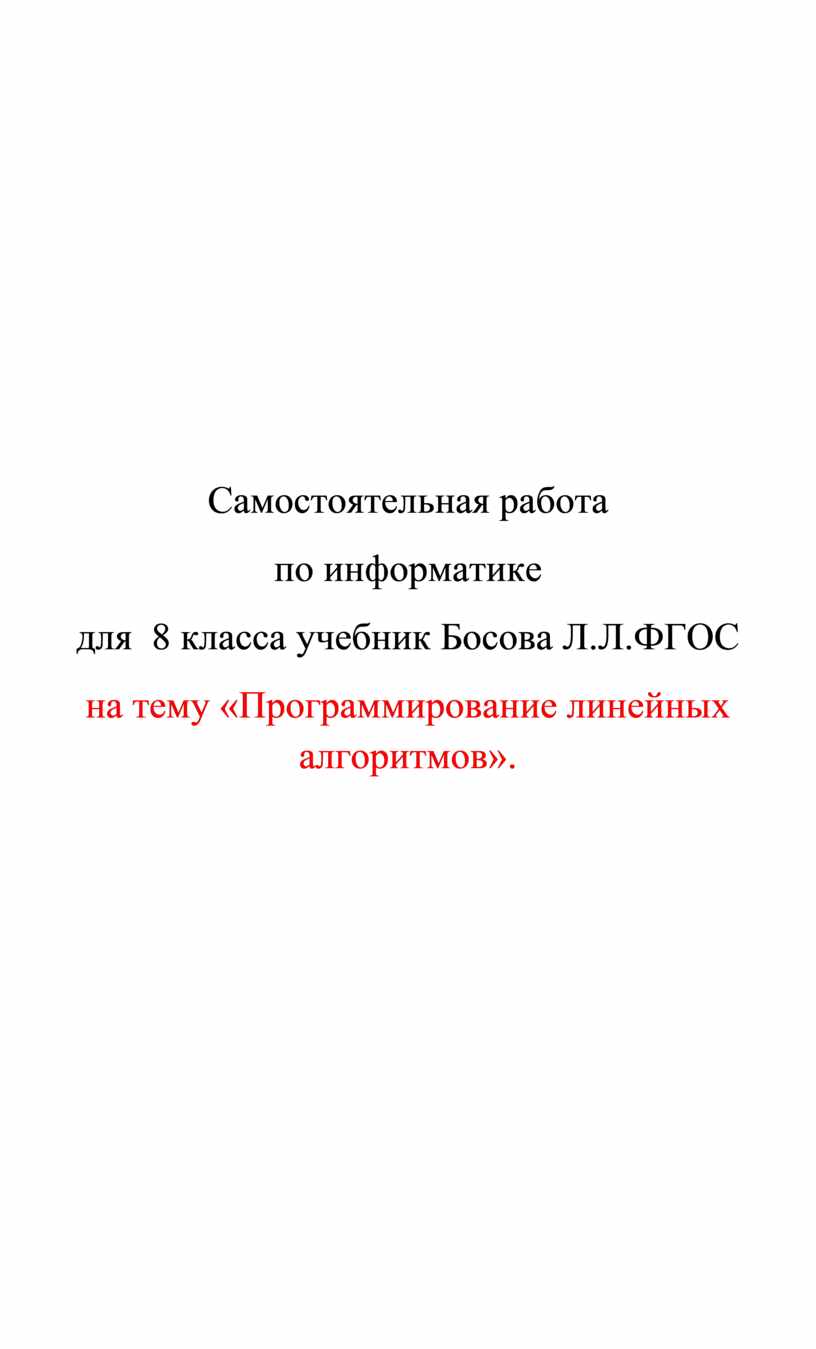 для 8 класса учебник Босова Л.Л.ФГОС