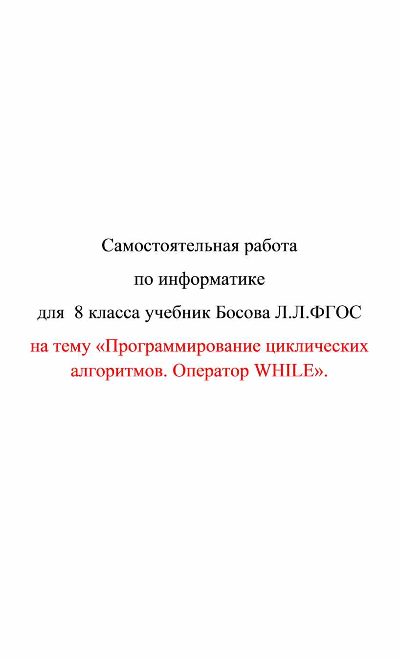 на тему «Программирование циклических алгоритмов. Оператор WHILE».