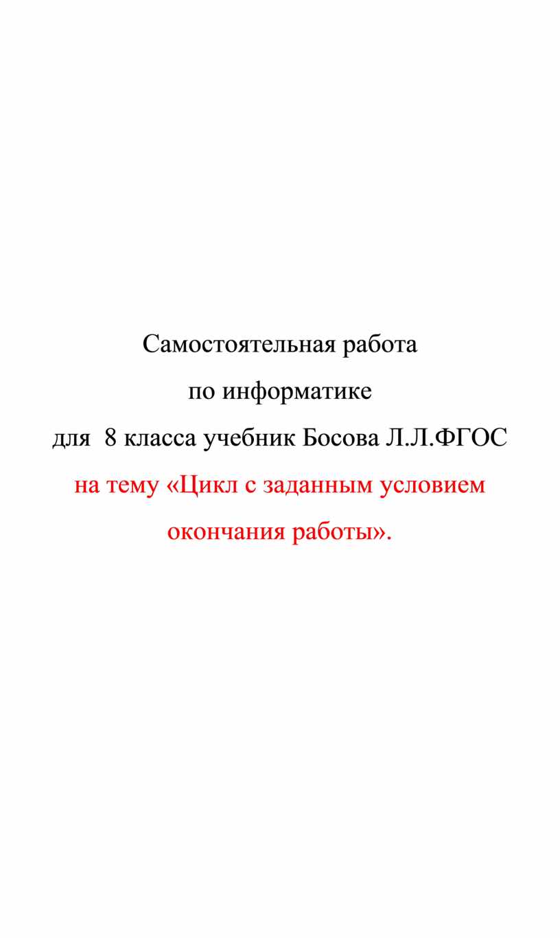 для 8 класса учебник Босова Л.Л.ФГОС
