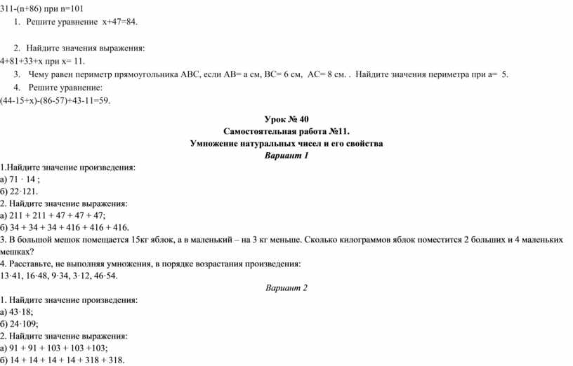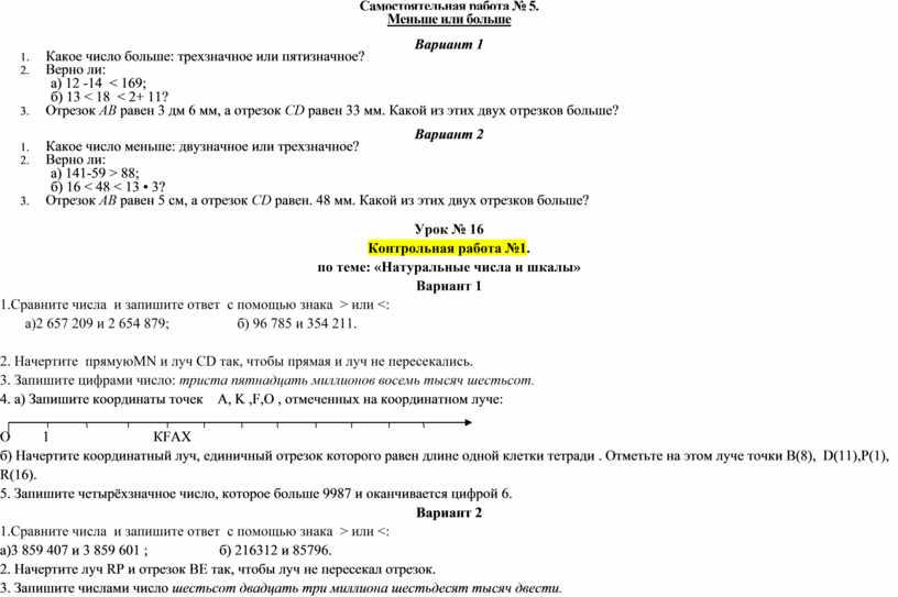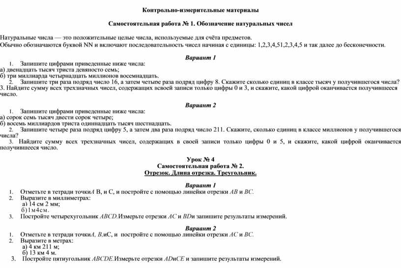 Самостоятельная работа № 1. Обозначение натуральных чисел