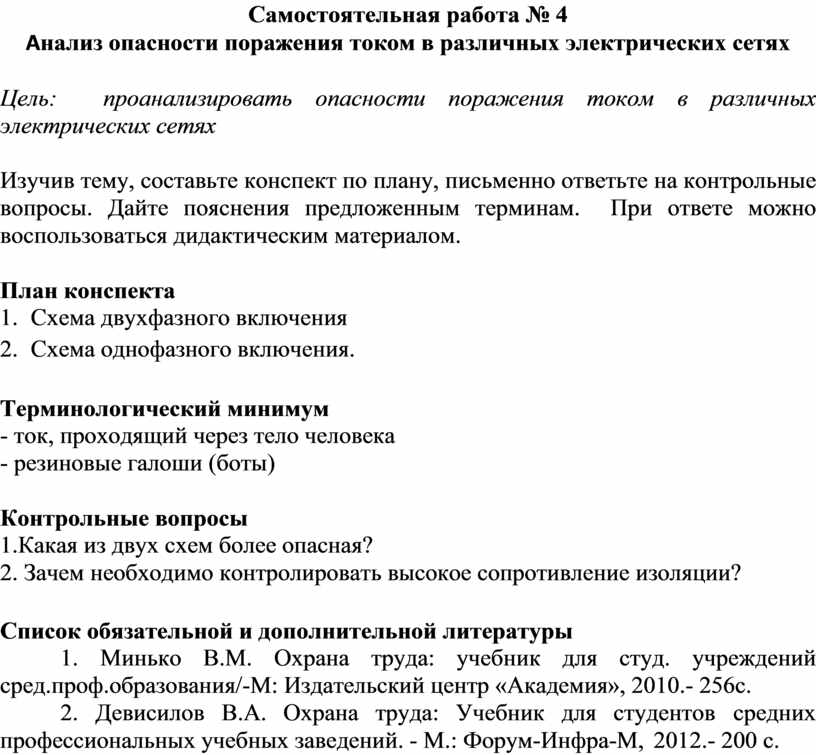 Цель: проанализировать опасности поражения током в различных электрических сетях