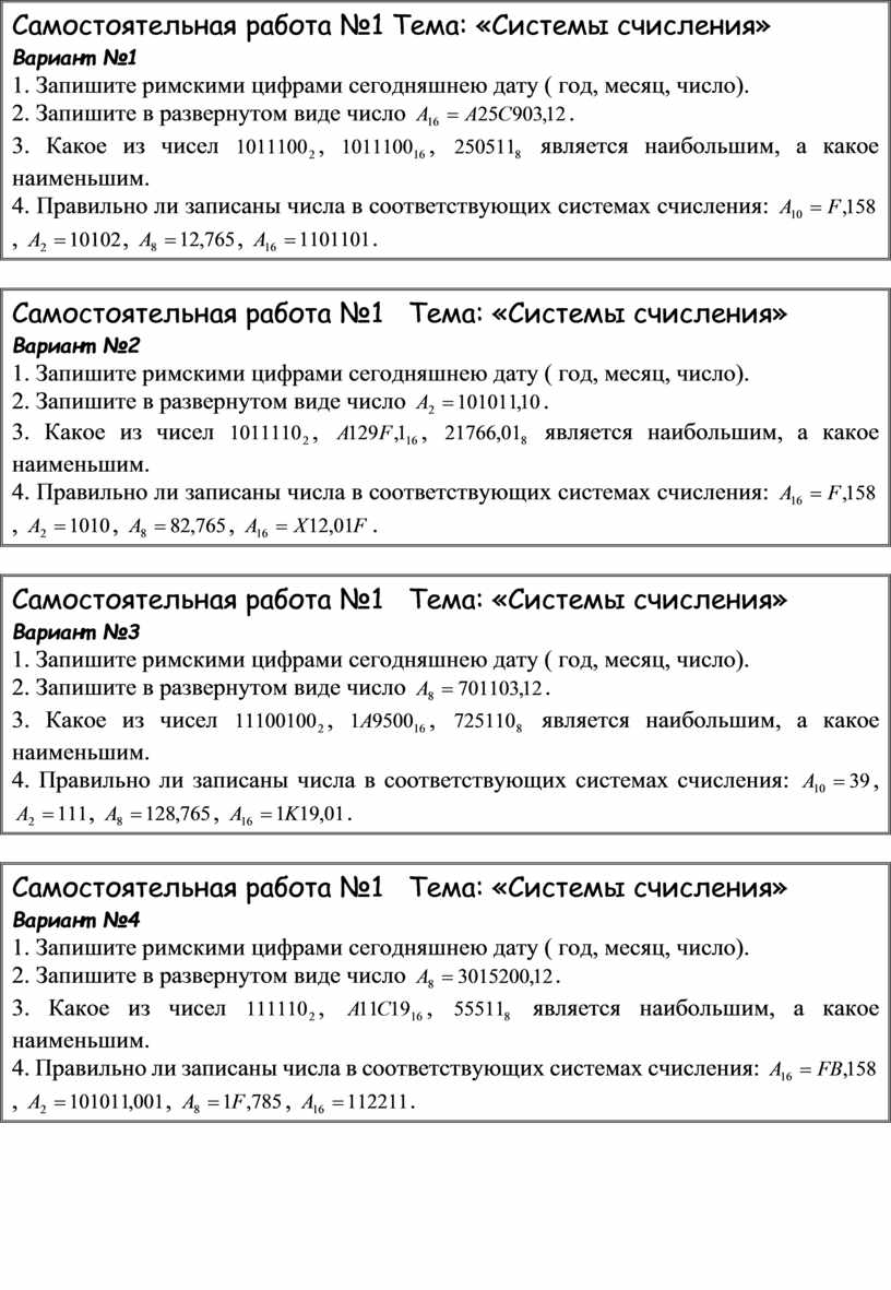 Самостоятельная работа №1 Тема: «Системы счисления»