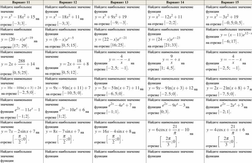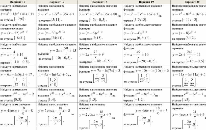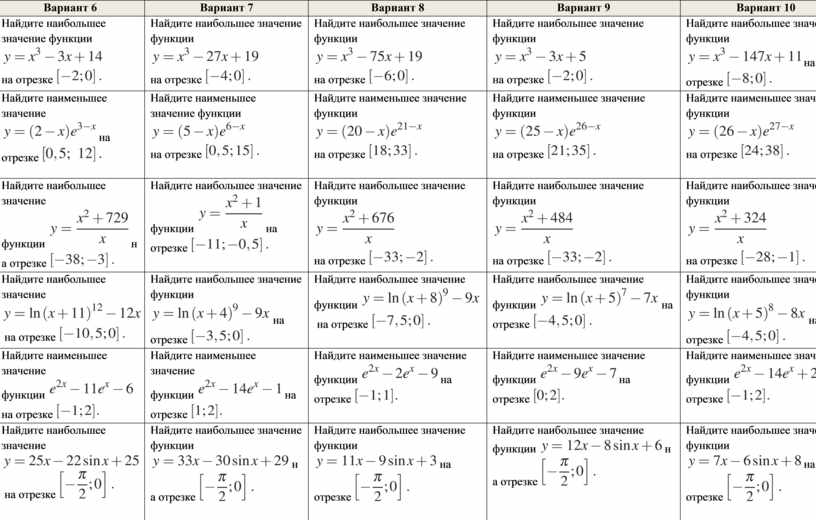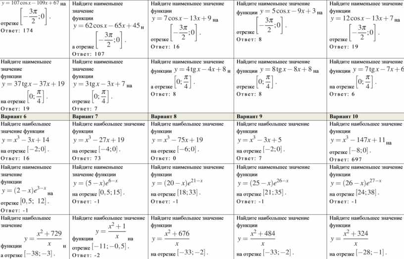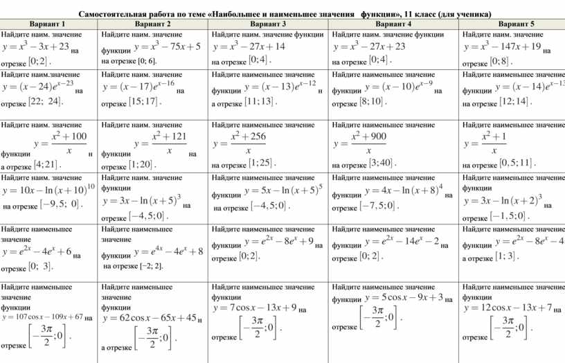 Самостоятельная работа по теме «Наибольшее и наименьшее значения функции», 11 класс (для ученика)