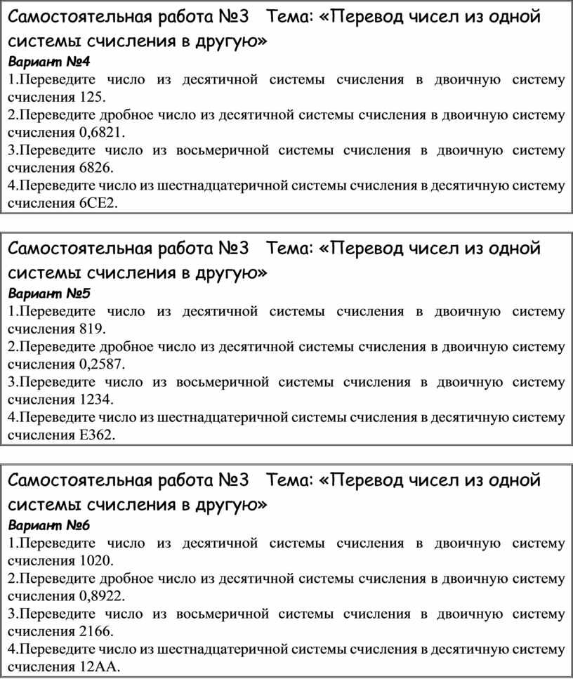 Самостоятельная работа №3 Тема: «Перевод чисел из одной системы счисления в другую»
