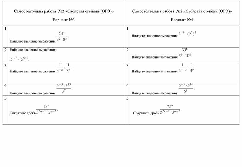 Самостоятельна работа №2 «Свойства степени (ОГЭ)» Вариант №3 |