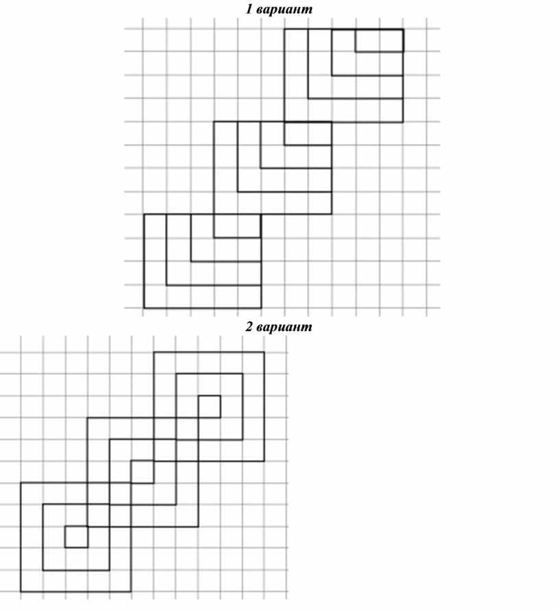 Напишите процедуру с параметром (параметрами) для исполнителя «Чертёжник». В теле основной программы с помощью конструкции нц n раз вызвать процедуру нужное число раз так, чтобы получился следующий узор.