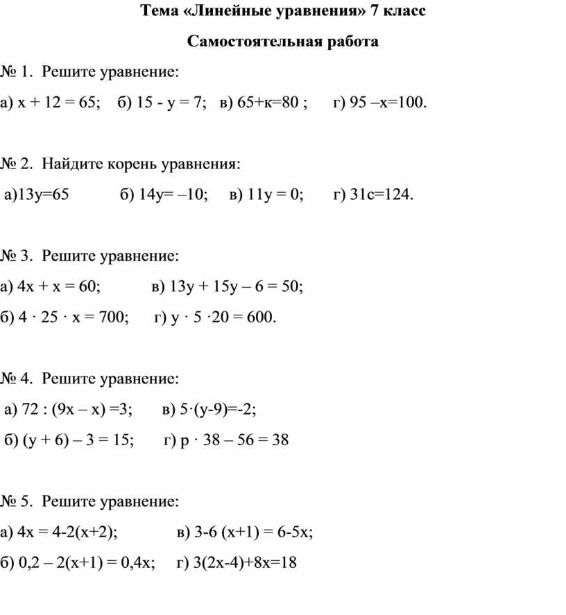а) х + 12 = 65; б) 15 - у = 7; в) 65+к=80 ; г) 95 –х=100.