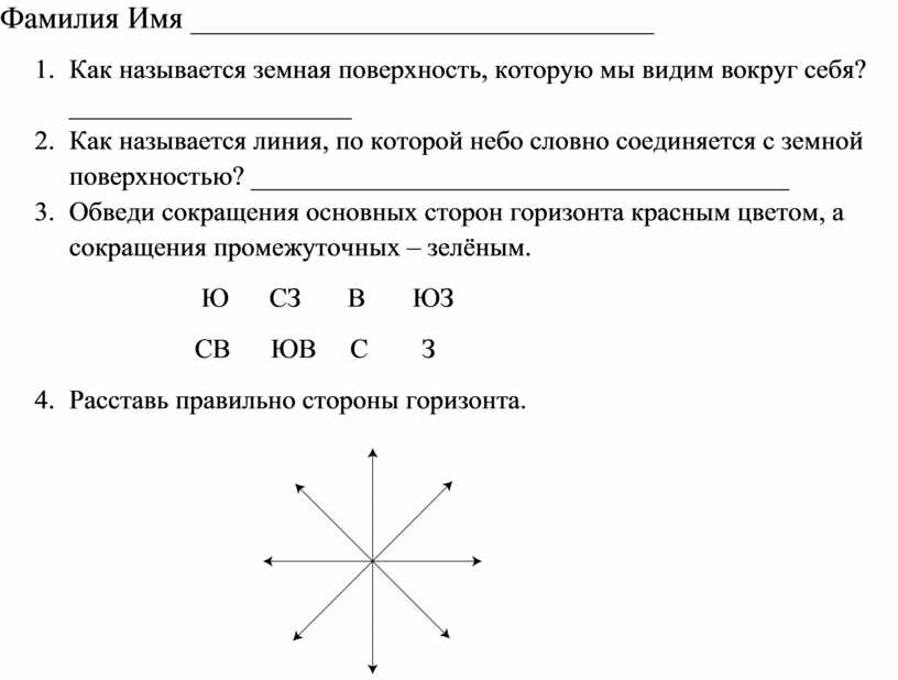 2. Как называется линия, по которой небо словно соединяется с земной поверхностью? ________________________________________