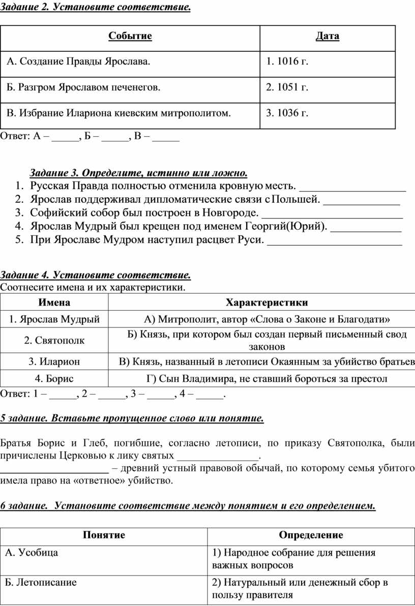 Самостоятельная работа по теме: «Расцвет Руси при Ярославе Мудром».