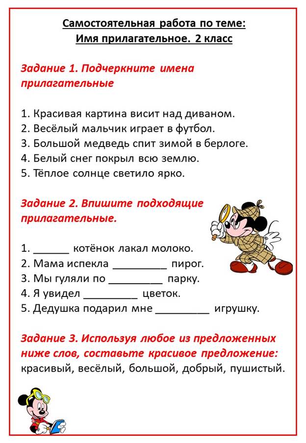 Самостоятельная работа по русскому языку на тему: Имя прилагательное, 2 класс