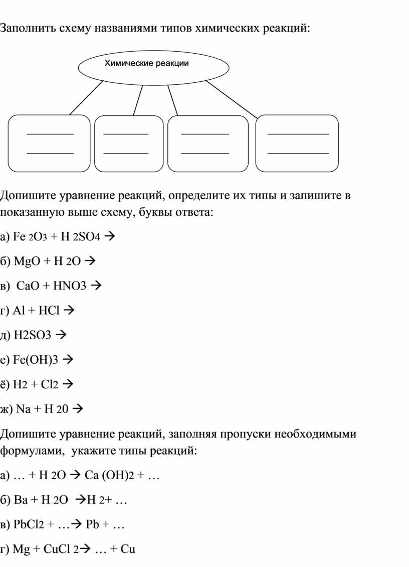 уравнение реакций, определите их типы и запишите в показанную выше схему, буквы