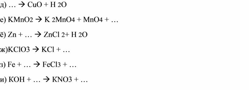 е) KMnO2 à K 2MnO4 + MnO4 + …