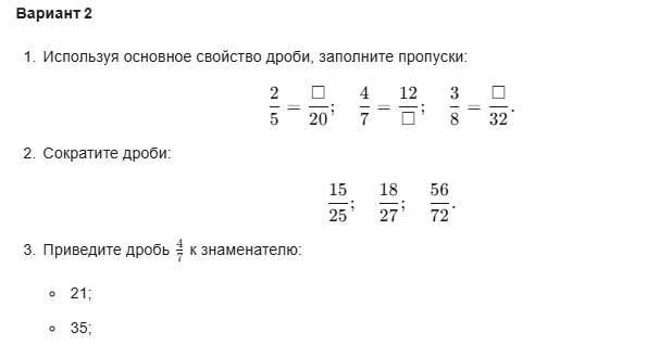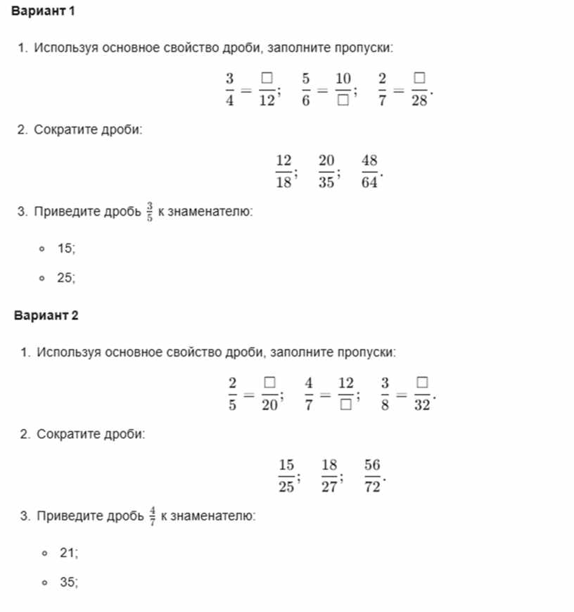 Самостоятельная работа по теме" Основное свойство дроби.Сокращение дробей ". 5 класс